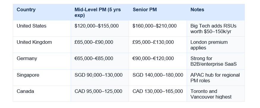 💡 Benchmark: A PM with 3 years of experience and demonstrated AI tool proficiency commands a 20–35% salary premium at product-led companies compared to traditional software firms. This premium is new since 2024 and growing.