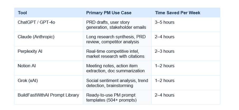 The compounding effect: a PM who uses these tools saves 10–15 hours per week on low-level documentation and synthesis work. Those hours go back into user research, strategic thinking, and stakeholder management — the work that actually determines career trajectory.