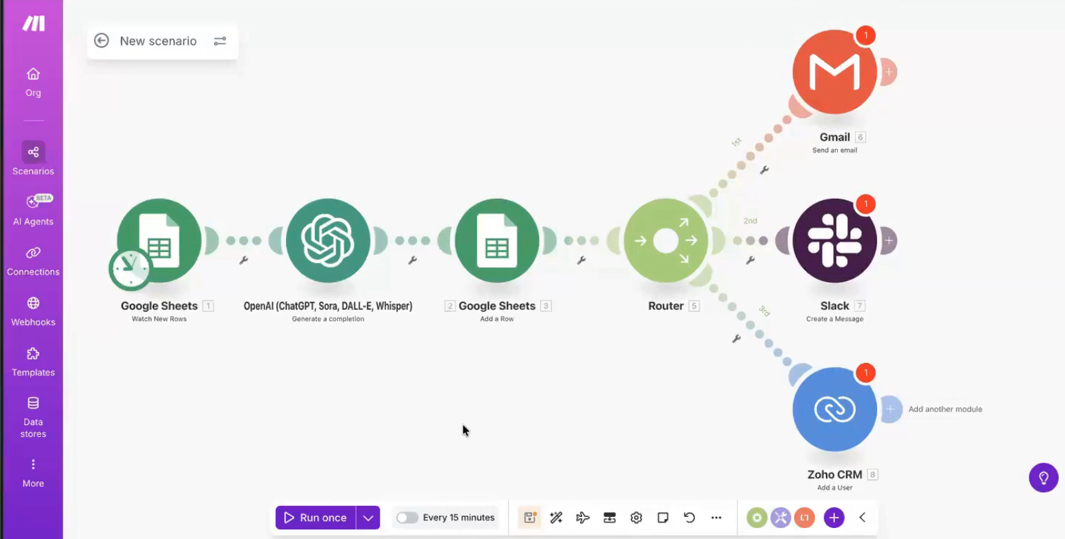 No Slack? Add a Gmail module instead → Send Email. Same logic, different destination.