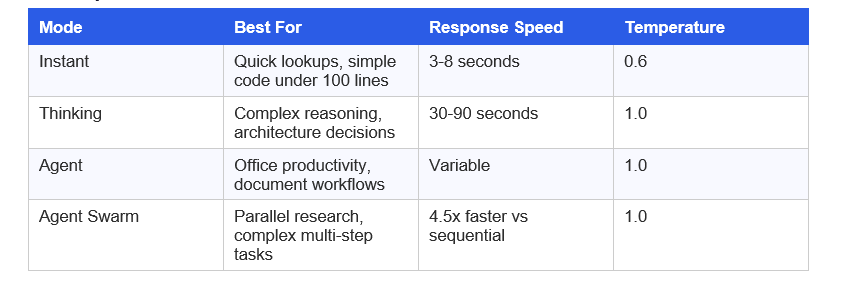 This is the feature that has no equivalent anywhere else in the market. Agent Swarm is currently in research preview and represents a fundamentally different approach to complex task execution.