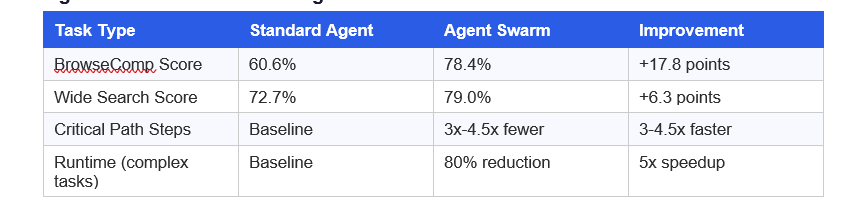 The result: 4.5x faster task completion on wide-search tasks and an 80% reduction in end-to-end runtime compared to sequential single-agent approaches, according to Moonshot AI's January 2026 testing data.