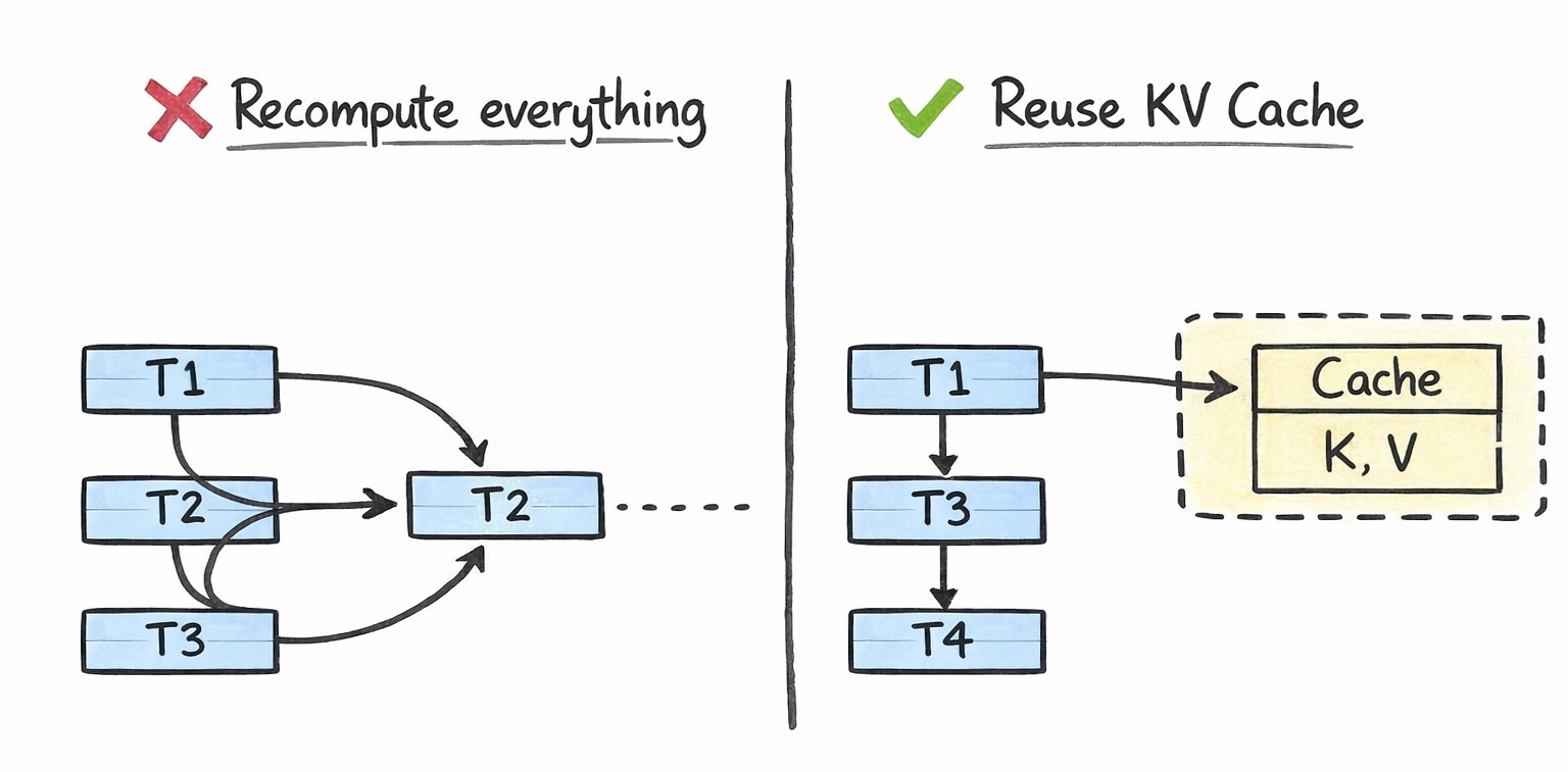 Every time you chat with ChatGPT, Claude, or Gemini, the model generates your response one token at a time. Each new token requires the model to look back at every previous token in the conversation to decide what comes next. Without any optimization, this means the model would redo the same calculations over and over again for tokens it has already processed. For a 4,000-token conversation, generating token #4,001 would require recomputing attention across all 4,000 previous tokens from scratch.